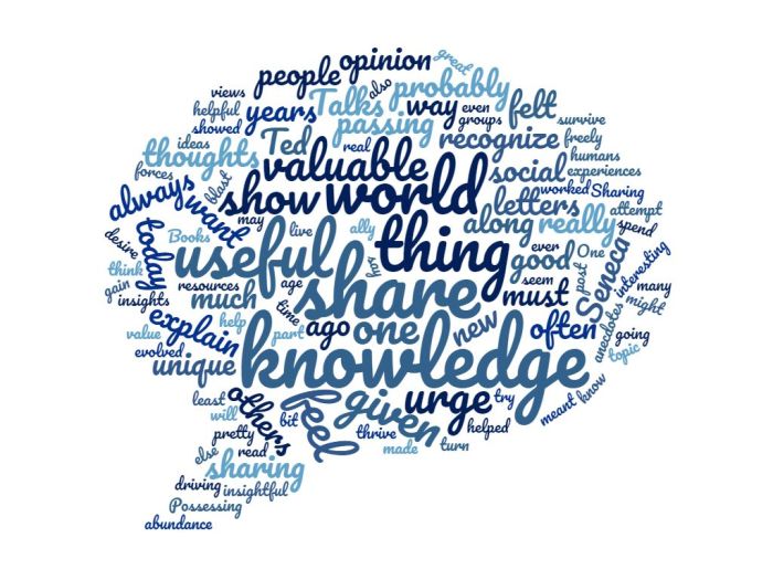 We probably should not turn against this urge to share useful knowledge. Books, insightful anecdotes, and Ted Talks seem to have worked out pretty good for humans in terms of sharing and passing along useful information. We should recognize, however, that often the desire to share our knowledge is not as altruistic as Seneca might have you think. Our urge is a bit self-serving, so before we post on Facebook about how obviously correct our political views are relative to others, we should recognize the evolutionary forces driving us to have an opinion and encouraging us to blast those ideas out into the world in an attempt to show off. Ultimately, if you are going to share your thoughts, try to spend some time developing them so that they provide real value to the person who may encounter them.