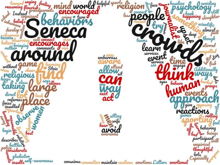 I think Seneca is correct in saying that being in large crowds encourages bad behaviors and can push us to act in ways that we otherwise would find abhorrent. But, I don’t think it is necessary for us to withdraw from crowds entirely. I think we should still participate in crowds and allow ourselves to be engaged with our culture, but we should approach crowds with a mindset that keeps us aware of what is taking place around us and how we are acting. Effectively, I think we should approach crowds with the mind of a journalist.