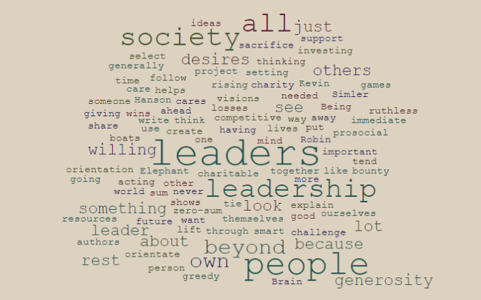 “This helps explain why generosity is so important for those who aspire to leadership. No one want leaders who play zero-sum, competitive games with the rest of society. If their wins are our losses, why should we support them? Instead we want leaders with a pro-social orientation, people who will look out for us because we’re all in it together.”