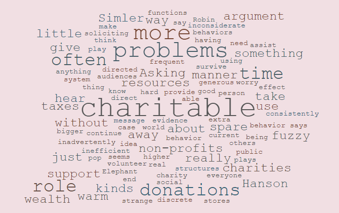 “In effect, charitable behavior says to our audiences, I have more resources than I need to survive; I can give them away without worry,” continue Simler and Hanson. The fact that our donations are often public and are often directed to causes that make us feel warm and fuzzy are evidence that we are not really using our donations to try to solve real problems. Asking the government to step in and play a bigger role might really address the problems that are out there, but it wouldn’t give us the warm fuzzy feeling we are looking for, and wouldn’t allow us to advertise to others about how charitable we are. This is why it is so hard to say no to people soliciting donations at grocery stores. We don’t know anything about the charitable cause they are asking us to support, but if we don’t take the chance to advertise how generous we are, we inadvertently advertise how inconsiderate we might be, or how little resources we have to spare. These little charitable behaviors end up being more about ourselves than about the good we are trying to do.