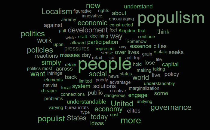 In The New Localism Bruce Katz and Jeremy Nowak argue that political decision-making, solutions to complex problems, and innovations in progress and economic development occur more at the local level than at the national level in the world today. Their argument is that national politics is complex and cumbersome, with too many large and disconnected voices and opinions to tailor policy solutions to problems in ways that actually make sense. More local structures, on the other hand, are better suited to find and implement real solutions to the specific problems taking place in a given region.