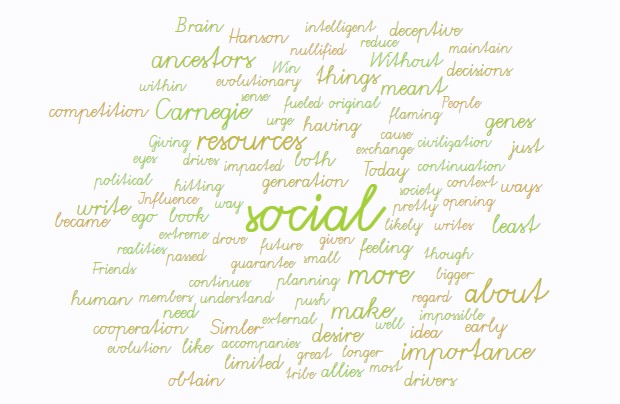 Underlying both our cooperation and competition instincts is social status. For our earliest ancestors social status meant that you could obtain a mate, and as we evolved higher social status meant that you could also command more resources and have more allies and protection within your social group. For our early ancestors, having a high social status (in the eyes of Carnegie being important) meant that your genes would continue and that you had allies and resources to make it more likely that your genes were passed on to the next generation and the following generation.