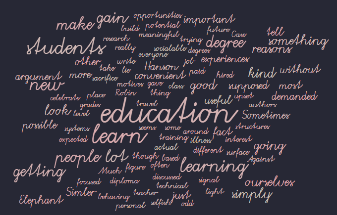 The quote above is from Kevin Simler and Robin Hanson’s book The Elephant in the Brain when the authors talk about why we go to school and what purpose education is serving for our society and for us as individuals. Education costs have been rising and we continue to encourage everyone to go to college. Several presidential candidates on the Democratic side have even put forward plans for free tuition. The idea at play as college tuition rises, as we push everyone toward college, and as our candidates outline plans for everyone to be able to afford college is the idea that higher education is all about learning useful and valuable knowledge that will help every individual and our entire society become more productive and better functioning. We want smart people with extensive education to drive our society forward, and college is the way to make that happen.